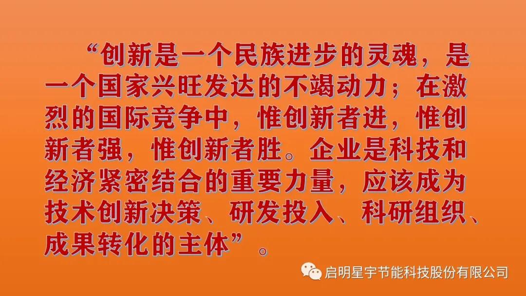 “創(chuàng)新是一個民族進(jìn)步的靈魂,是一個國家興旺發(fā)達(dá)的不竭動力;在激烈的國際競爭中,惟創(chuàng)新者進(jìn),惟創(chuàng)新者強(qiáng),惟創(chuàng)新者勝。企業(yè)是科技和經(jīng)濟(jì)緊密結(jié)合的重要力量,應(yīng)該成為技術(shù)創(chuàng)新決策、研發(fā)投入、科研組織、成果轉(zhuǎn)化的主體”。